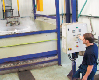 Verwarmde chemische baden zorgen voor een superieure reiniging van de platen, vergeleken met het afspuiten met water en/of handmatig borstelen met SS borstels op locatie.
