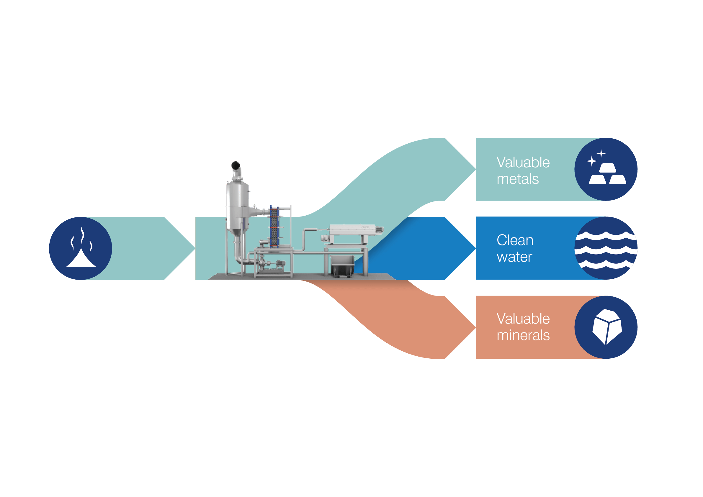 Le processus de lixiviation, qui consiste à récupérer des matériaux précieux à partir de solides et de cendres volantes, est de plus en plus répandu. Le système AlfaFlash ZLD peut aider nos clients à concentrer le sel et d'autres produits, mais aussi à traiter les eaux usées.